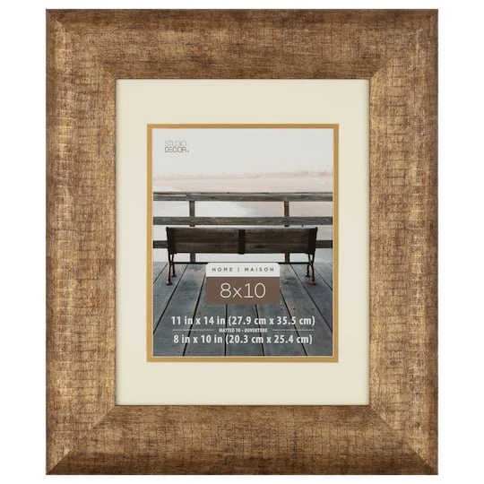 Display your picture in style with this beautiful portrait frame from Studio Décor. The mat and fillet will enhance the beauty of your image. Frame includes a thick piece of clear glass to protect your artwork. Mat fits 8″ x 10″ photo, or you can remove the mat for a 11″ x 14″ photo.
