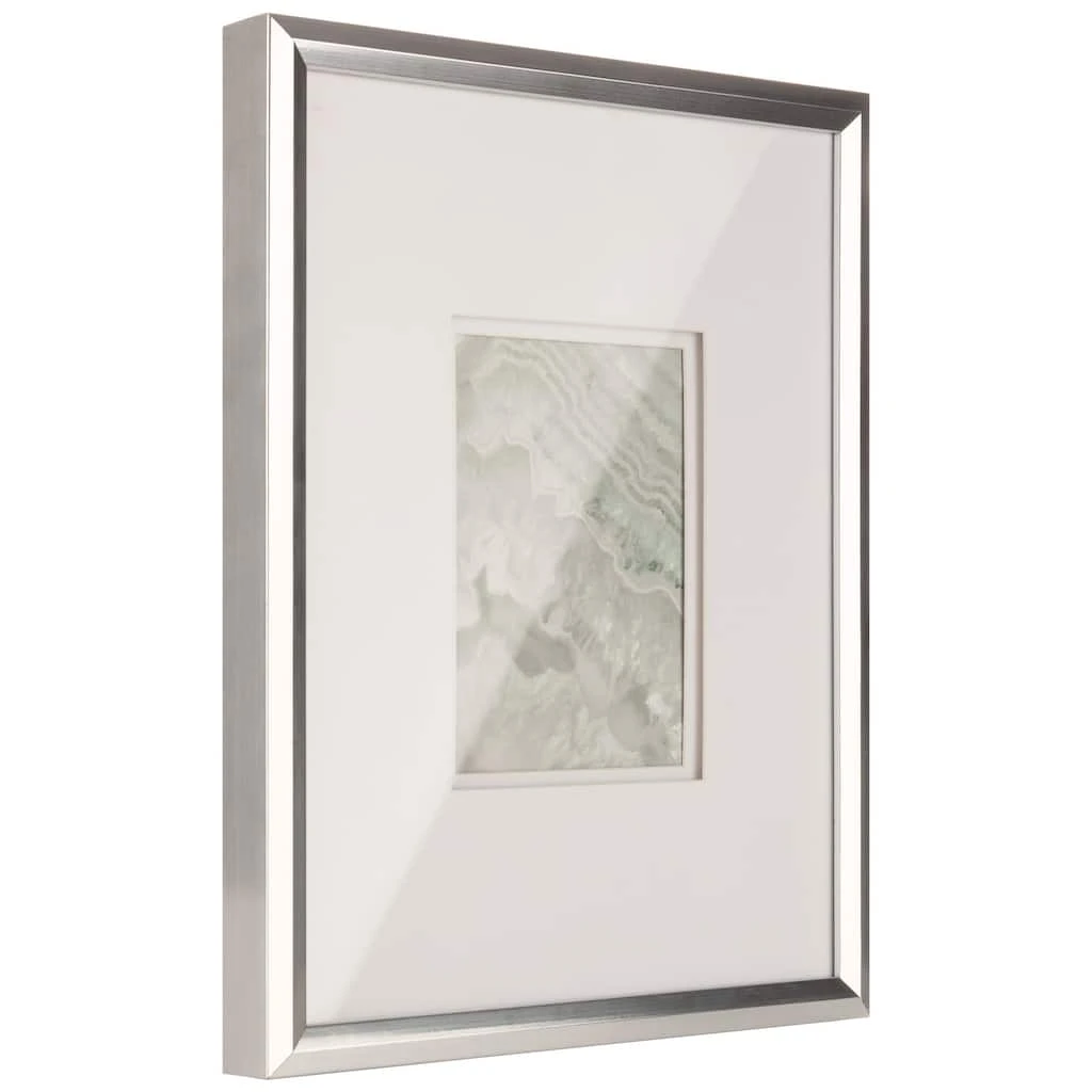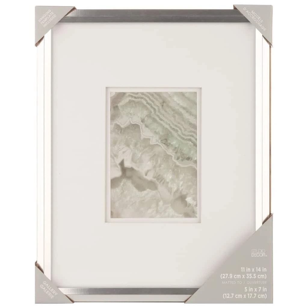 Quickly and easily preserve a moment in time with this metallic silver colored frame from the Gallery collection by Studio Décor. Present a photograph of your loved ones or exhibit a cherished piece of artwork in this uniquely designed picture frame. A thick layer of glass protects your display.