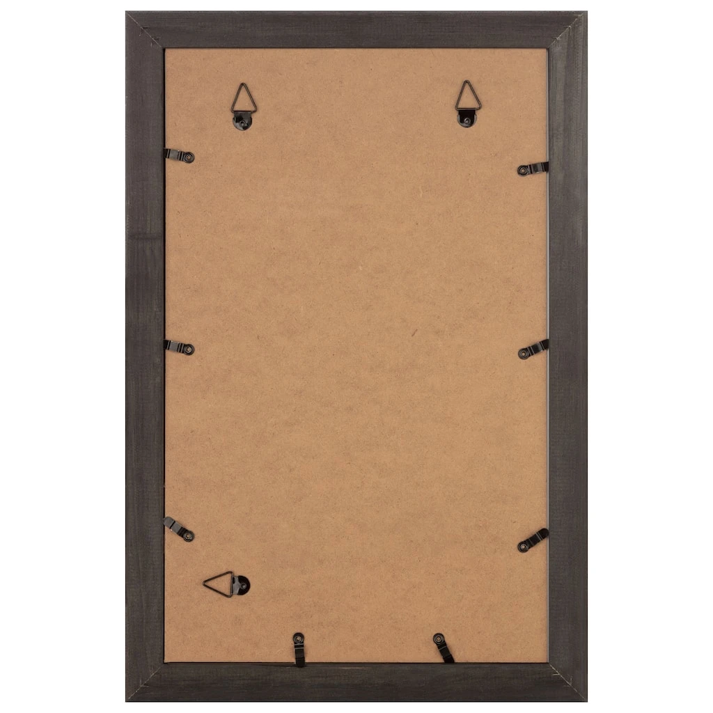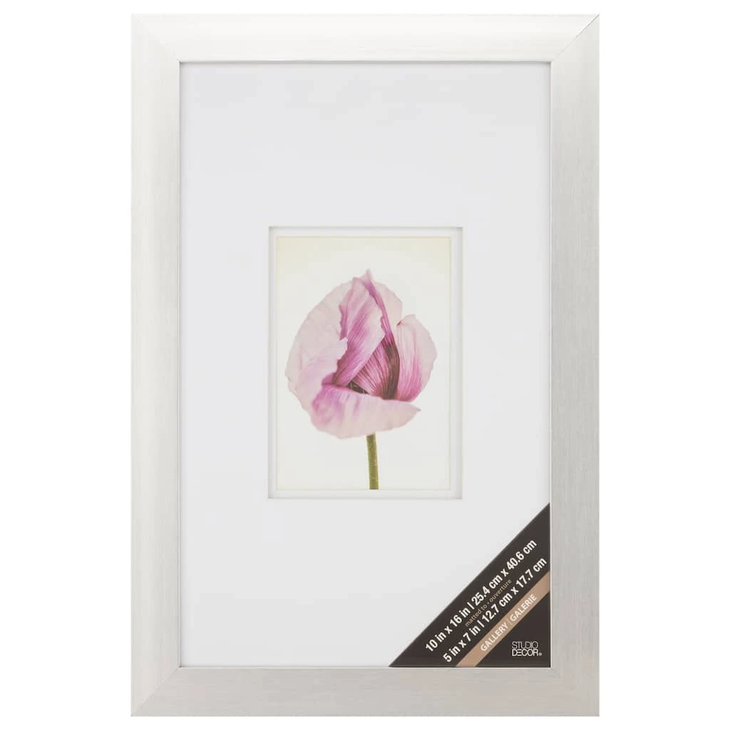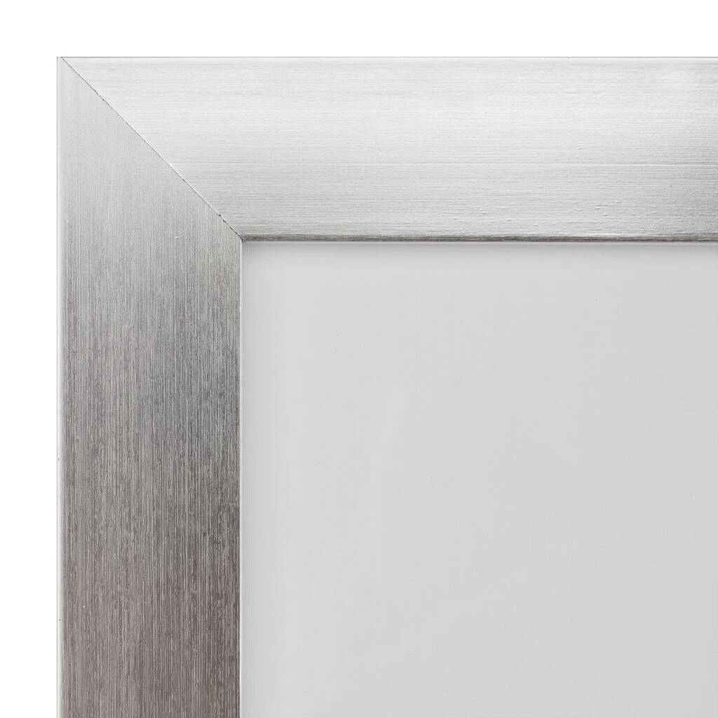 - Silver colored frame with white double mat